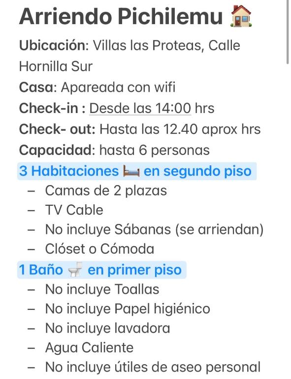 El check-in en Arriendo Pichilemu comienza a las 14:00 y el check-out es hasta las 13:00.